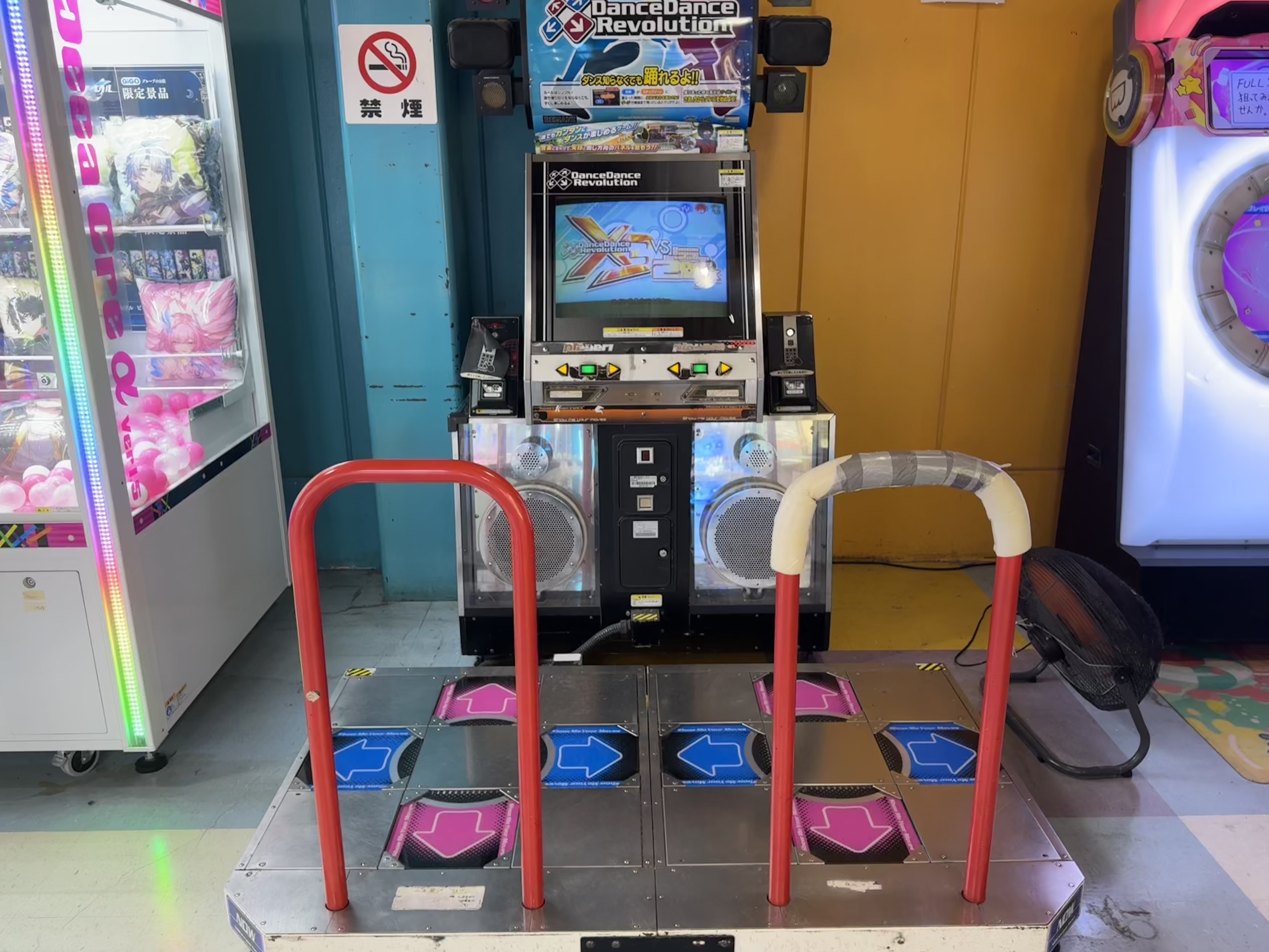 待機用ベンチ、大型扇風機あり。但し、maimaiと共有状態である。